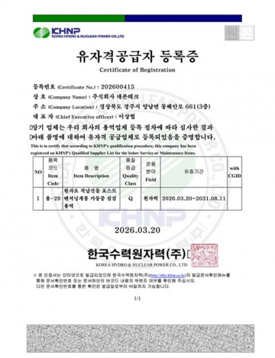 [한수원] 유자격자 등록 - 원전 안정성관련 구조물 점검 용역 Q등급 페이지 정보 작성자최고관리자 댓글 0건 조회 586회 작성일 21-09-15 16:11 본문 [한수원] 유자격자 등록 원전 안정성관련 구조물 점검 용역 Q등급 SNS공유 목록 댓글목록 댓글목록 등록된 댓글이 없습니다.